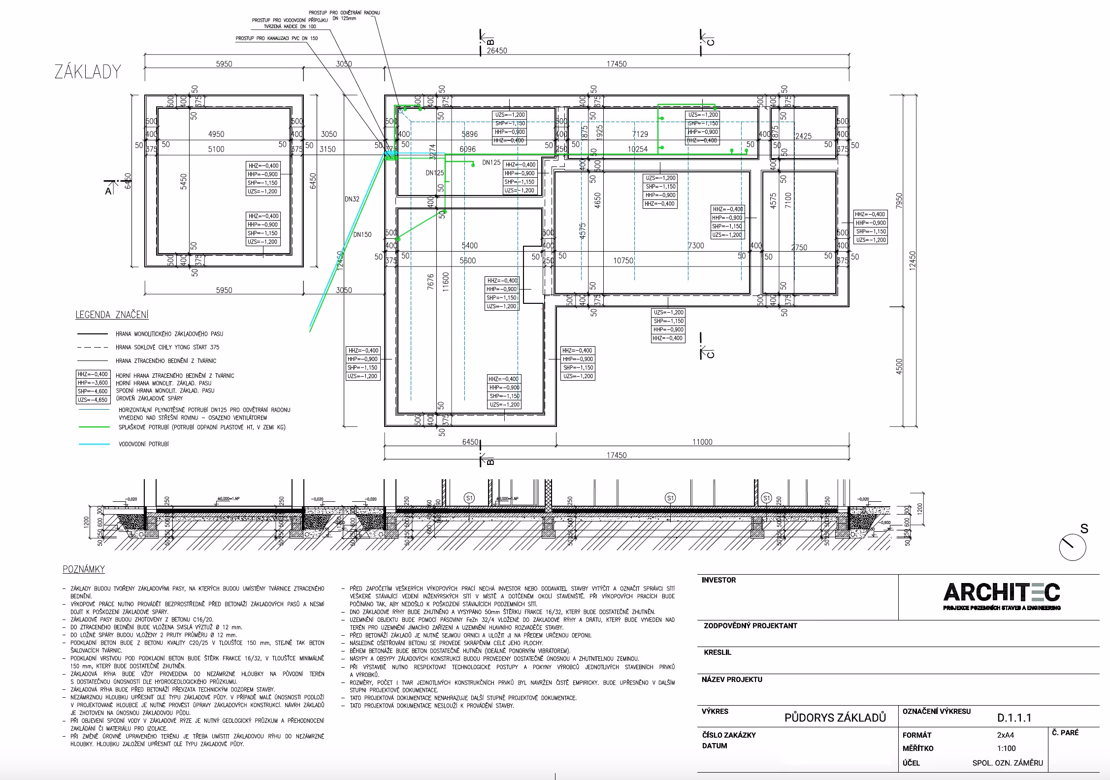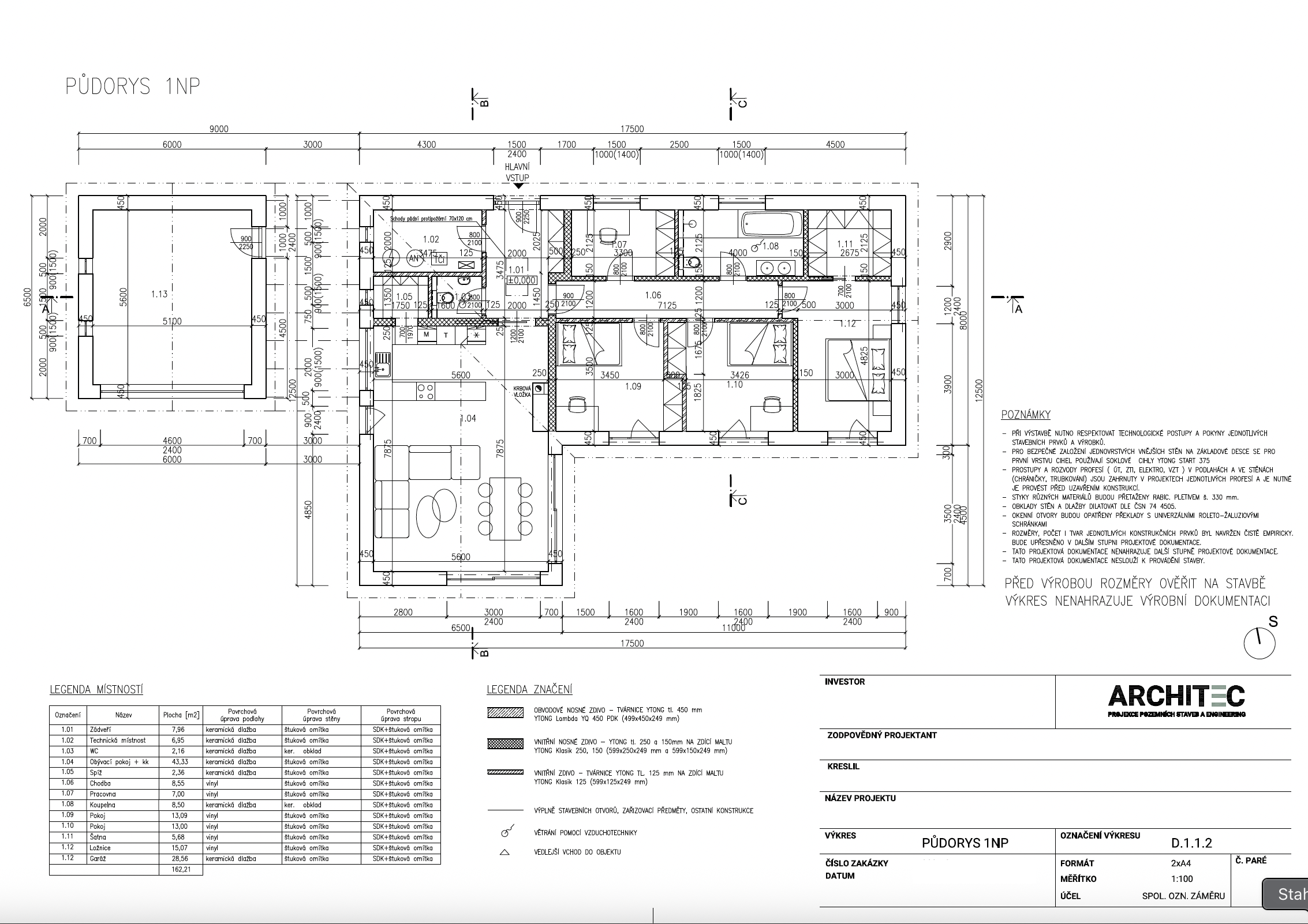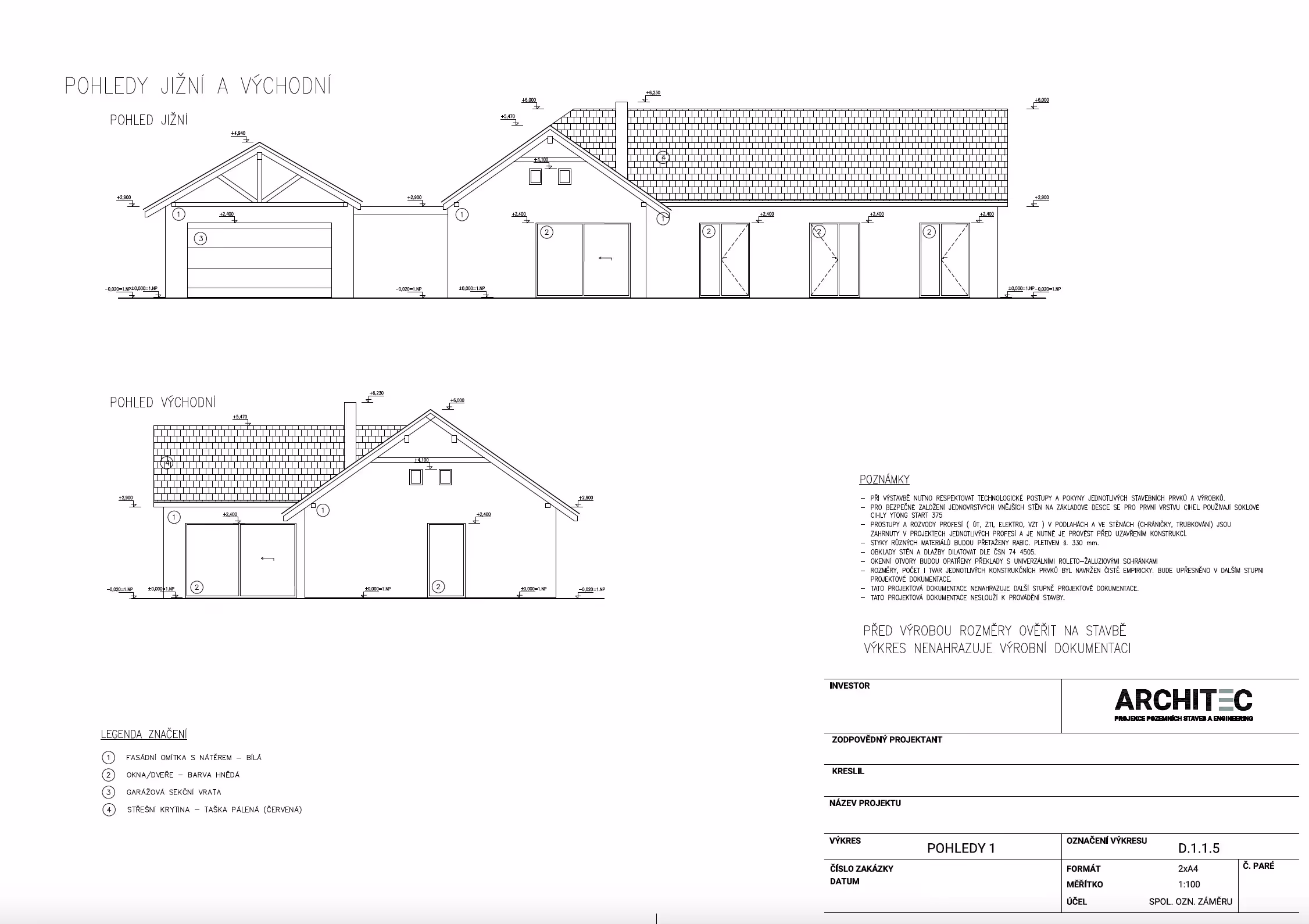 Dispozice je členěna na klidovou a obytnou část s přímým vstupem na terasu z obývacího pokoje. Součástí hlavního objemu stavby je garáž, která je funkčně propojena přístřeškem, který zároveň slouží jako venkovní kryté parkovací stání. Stavba je navržena s ohledem na přirozené oslunění, orientaci na světové strany a přehledné provozní vztahy. Objekt je umístěn na parcele v nové rezidenční zástavbě obce Bohdalovice u Větřní. Dům je vytápěn kombinací dvou zdrojů – hlavním zdrojem je tepelné čerpadlo vzduch/voda, které je doplněné o bivalentní zdroj v podobě krbové vložky, která zároveň tvoří estetický prvek v obytné části objektu.