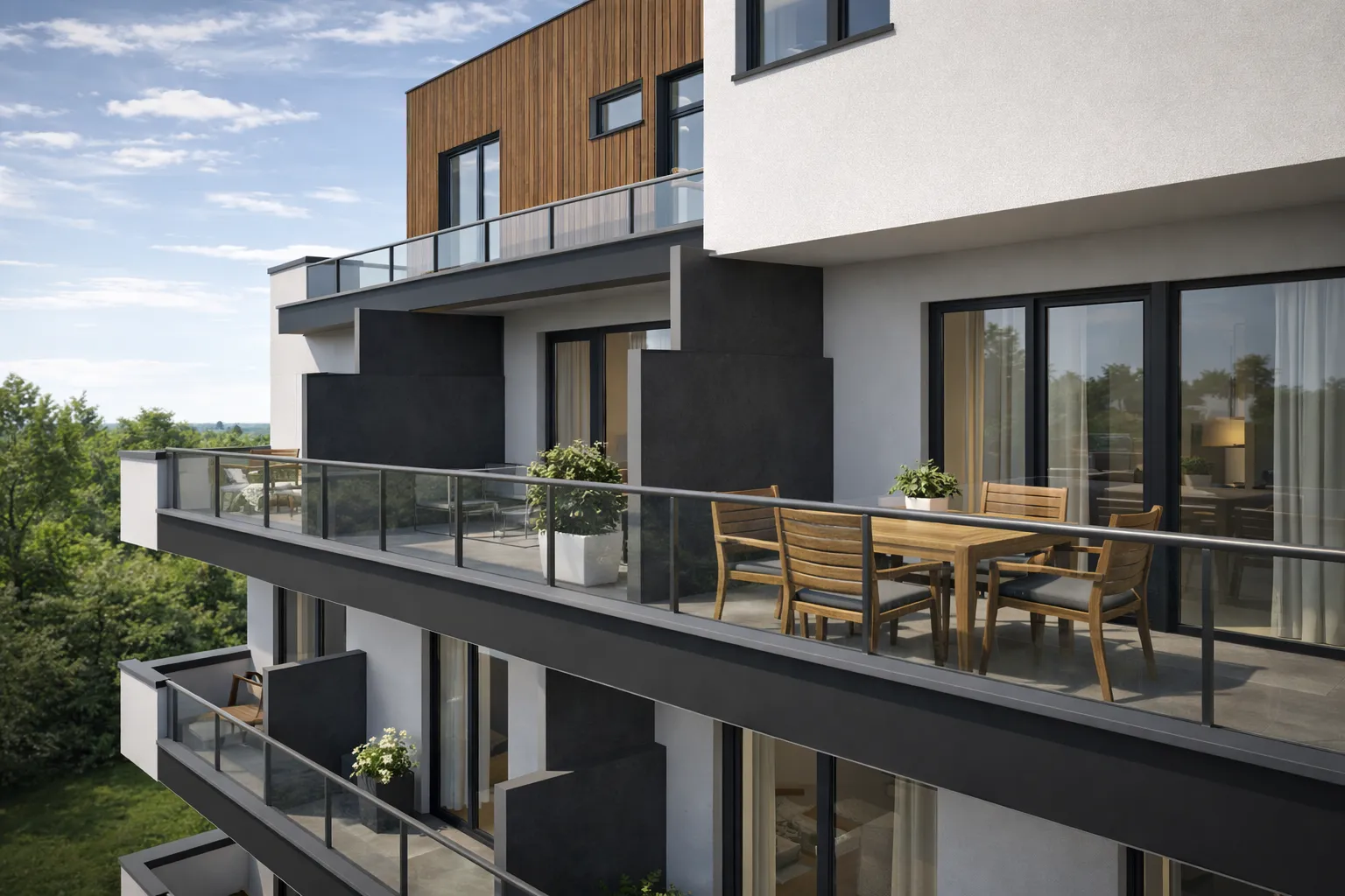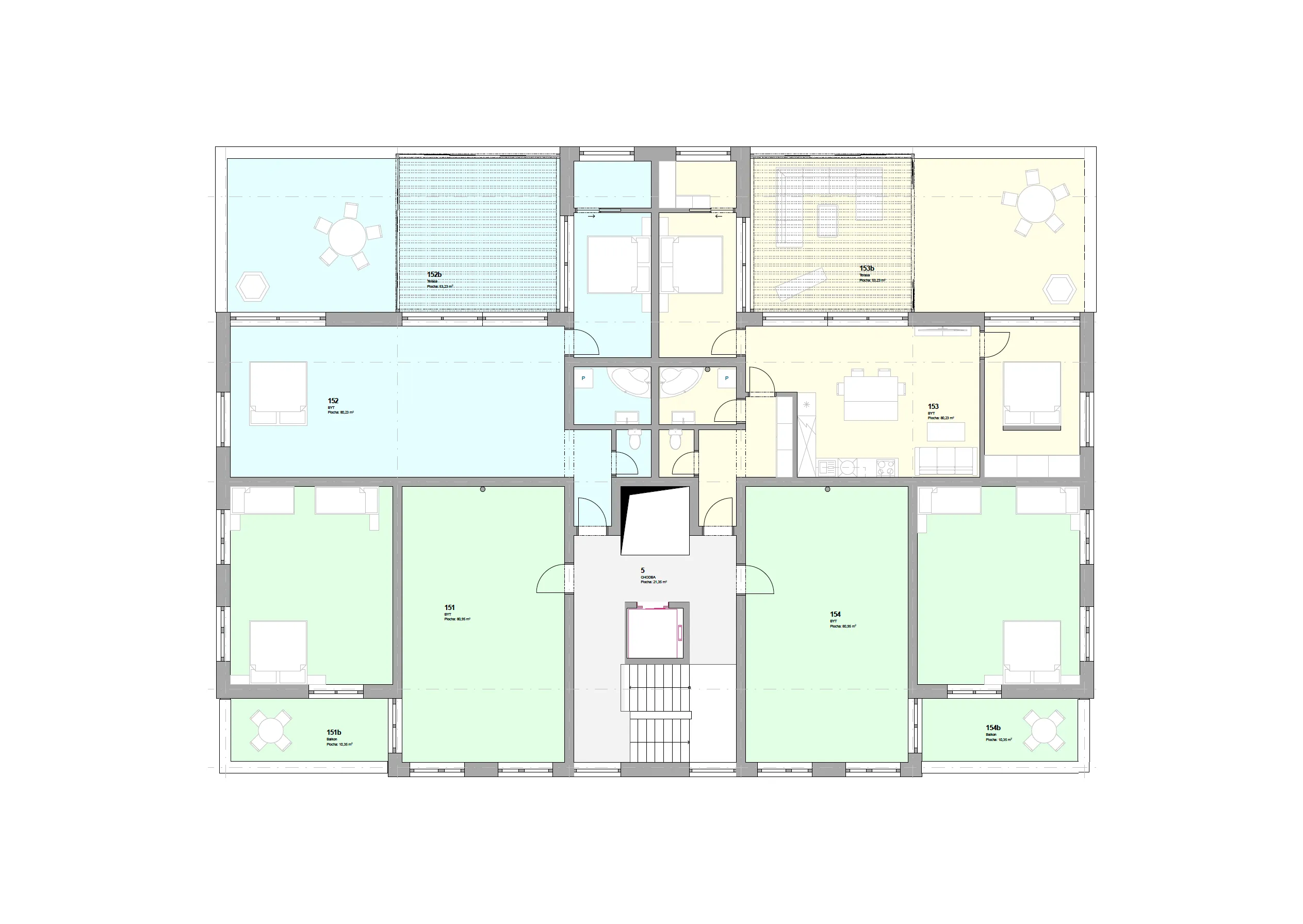 Studie bytového domu vznikla v rámci konceptu developerského projektu zaměřeného na výstavbu nové obytné čtvrti v jižních Čechách. Návrh pracuje s jednoduchou hmotou a důrazem na kvalitu bydlení. Bytový dům klade důraz na propojení obytných prostor s exteriérem prostřednictvím balkonů a teras.
