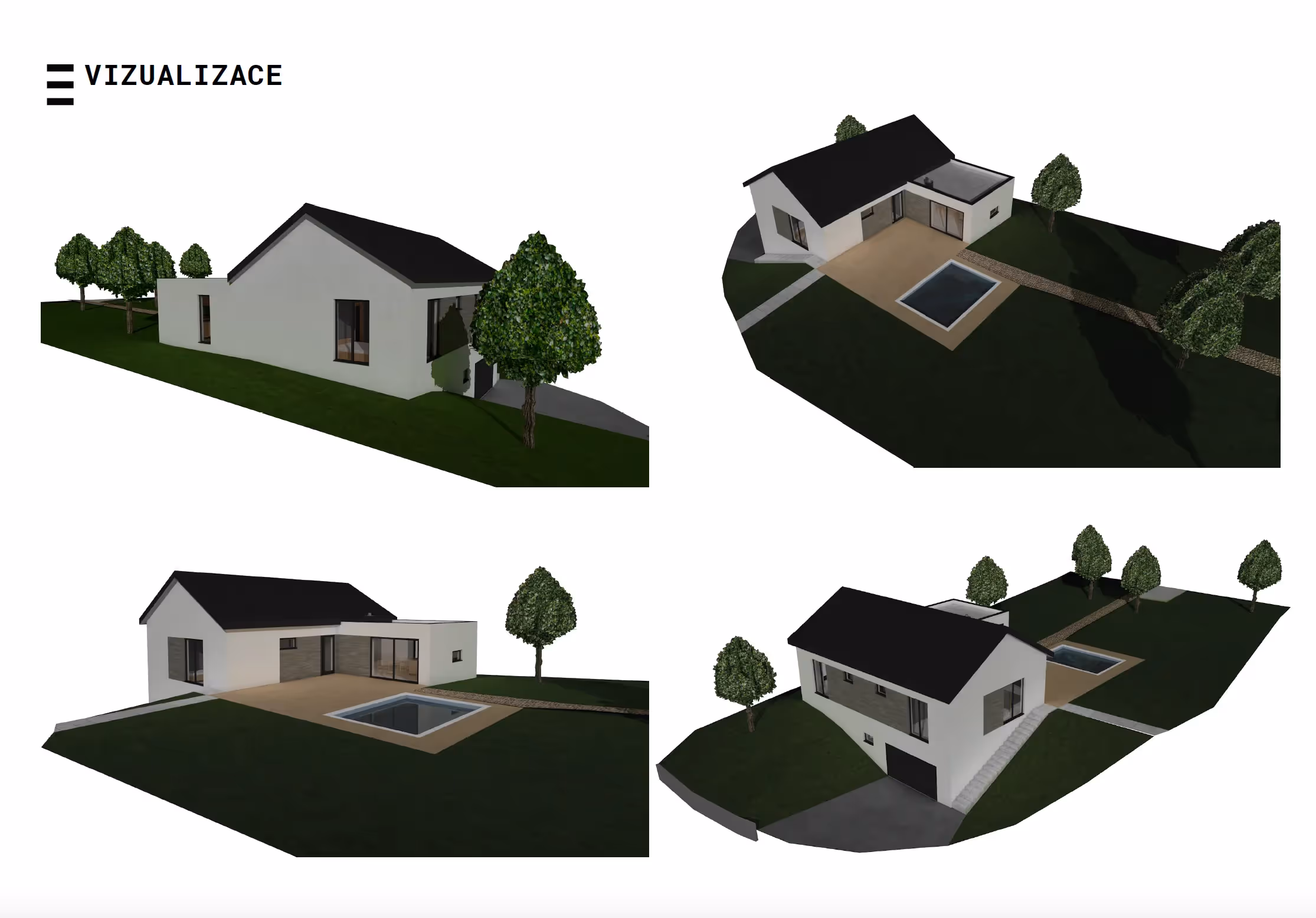 Návrh jednopodlažního podsklepeného rodinného domu umístěného na svažitém pozemku s atraktivním výhledem na zámek.