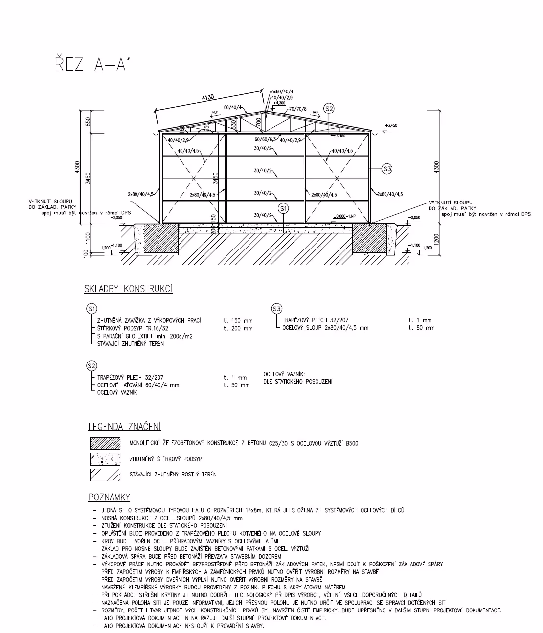 Objekt je navržen jako jednoduchá, účelná stavba s důrazem na praktické využití prostoru a snadnou manipulaci s uloženým materiálem.
